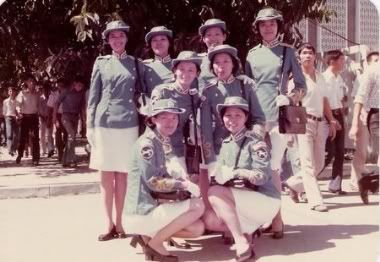 那天 偶滴包包裡 裝滴是胭脂花粉 學校發下滴 規定每個人都要化滴美美滴 只是大太陽底下操練之下 全體都已經變成像非洲來滴黑倫