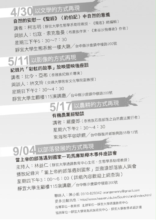 活動網址: http://www.heaven.idv.tw/Southisland/index.html