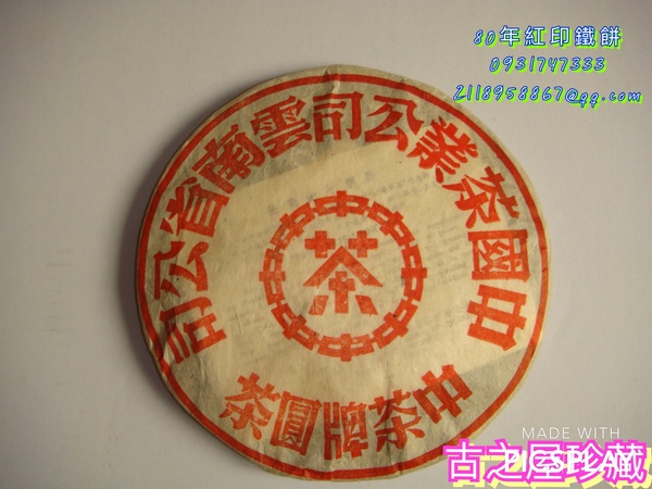 「中期紅印鐵餅」是中茶公司出品,80年代勐海茶廠成立初期的產品,因為外包裝八中茶字為紅色、採用鐵餅緊壓製作而得名。紅印鐵餅屬於印級茶,用料好加上50年的陳化,是普洱茶界公認好茶,非常具有收藏價值。