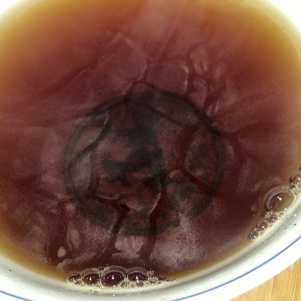 中期紅印鐵餅,开汤红润通透,水体幼细棉滑,入口淡淡陈韵带回甜,让人感受到水体明显的厚度,陈香沁人心脾, 醇厚稠滑,喉韵深沉,悠悠历史,尽在入口瞬间,多少故事蕴藏其中,更能品味到历史的感覺。