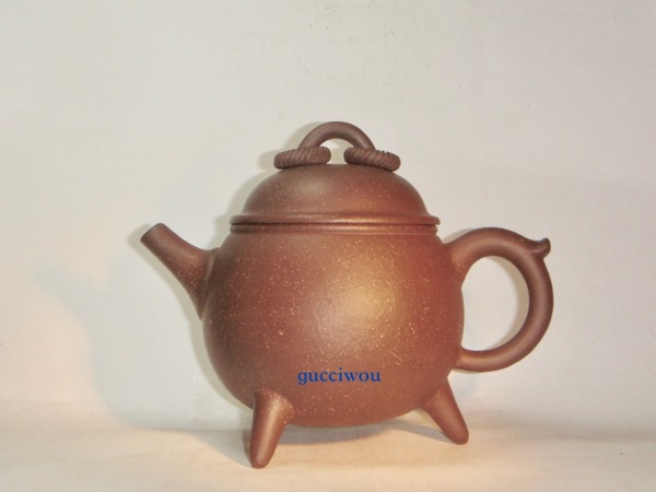 在六十年代後期「文革」浩劫中,年過花甲的裴石民對「破四舊」,「大砸傳統文物」痛心不已,用實際創作回擊人為的愚昧行動。他壯心不已,在原有製作過的仿古傳統壺上進行創新,以《串頂三足鼎壺》的創作,以嚴肅的主題立意,以凝重的傳統文化,以心中難平的氣憤之情,強制克服激動情緒,把思想情感融進紫砂陶藝,鞭達人為的歷史倒退逆流,創製成功古文化傳統應用於現代紫砂的不朽系列作品。現簡要賞析其「 串頂三足鼎壺」的藝術特點與風格。「 串頂三足鼎壺」以肅穆的古代銅鐘為主體造型,壺蓋、壺身渾成一體,流、把、鈕以十分簡潔、古樸自然、融合早期紫砂陶的特點,在歷史的空間選擇最佳的表達方式,把清秀不俗和凝重深厚腰線形式串聯在一起,並在鈕上分飾以一個新石器時代特徵的裝飾線圈,使二者達到統一,也使古韻與現代節奏合拍。嚴謹的製作,巧妙的安排,又在其追求形態神韻的同時充分體現出紫砂名壺的日用功能,擇善執著,求新求變可見一斑。