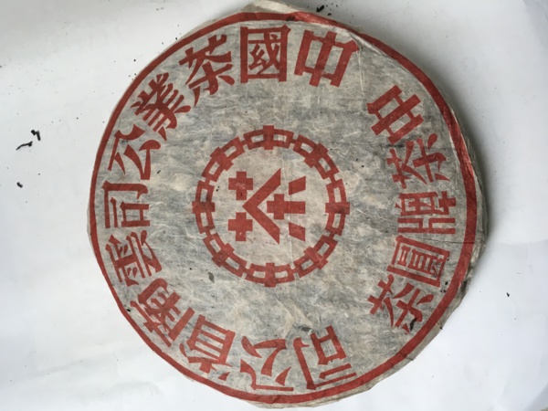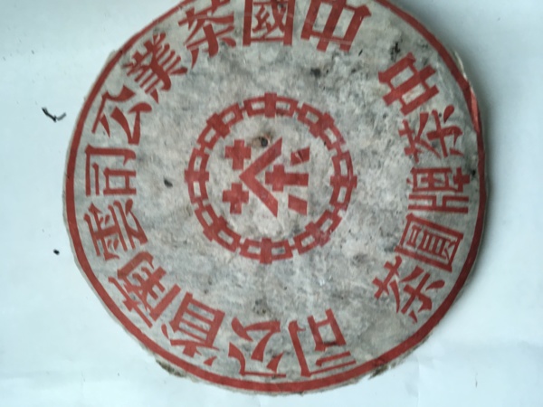 紅印圓茶又稱現代普洱貢茶,始製於 1940 年範和鈞創辦佛海茶廠之時。其餅茶內正均為紅色印記,且茶餅的外紙正面都印著 “ 八中茶 ” 中茶公司標誌。在 8 個 “ 中 ” 字組成的圓圈內,有一紅色 “ 茶 ” 字。在中茶公司所產的普洱茶品中,被冠以 “ 八中茶 ” 標誌者且又以 “ 茶 ” 字為紅色者,只有紅印普洱圓茶和紅印雲南沱茶,是空前絕後的。其印刷風格為手工硃砂拓版印刷,包裝採用單一紅色印刷。