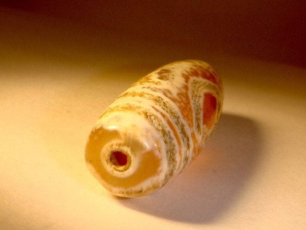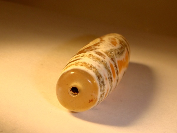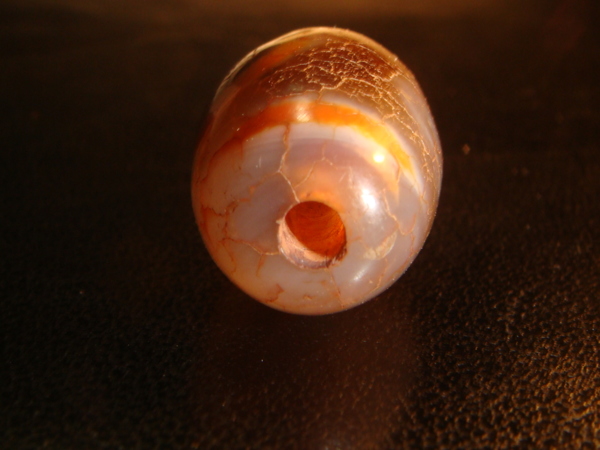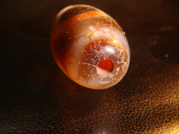 7、天珠的穿孔處必需和表面的色澤、光滑程度一致(有玉質感);且以乳白色或淡黃色為佳,黑棕色次之。