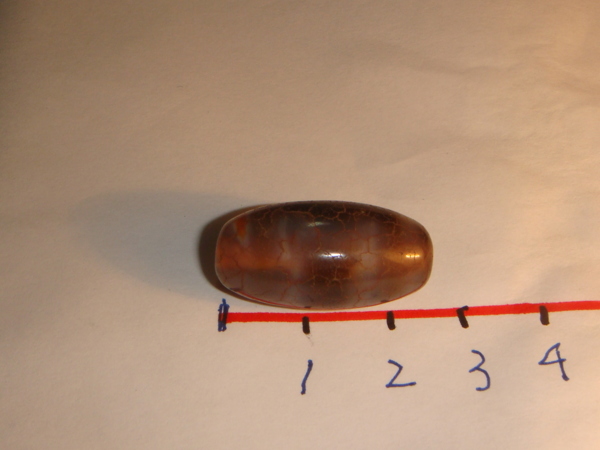 5、有些老天珠的表面會有硃砂(但並非沒有硃砂就不是天珠)。不過,此特徵目前日本已能用雷射仿製,判別原則是觀看硃砂呈現於表面的深淺程度是“非常態分佈”的,亦即有的硃砂呼之欲出,有的已在表面。