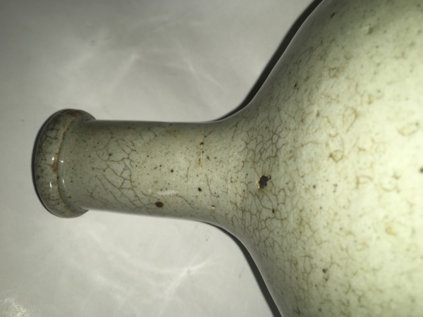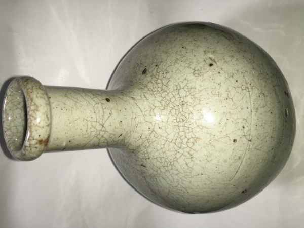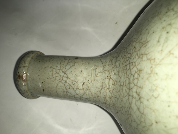 哥窯造型有瓶.爐.洗.盤.碗等物。就器胎說薄厚不同,胎質又有瓷胎與砂胎之分;胎色也有黑灰.深灰.淺灰.土黃等幾種不同色調;釉色有粉青.月白.油灰.青黃各色;從時間講,應有早晚之別,從產地講恐也不是出於一個窯口的產品,情況是很複雜的。因為至今也沒有找到哥窯的窯口,無法確定真偽,但從出土或傳世哥窯與宋代官窯相對比來看;它們的造型及胎釉老化特徵都是相通的,自古就有官哥不分的說法,本人認為是有道理的。「哥窯」究竟是來自一個產地,還是數個窯址?文獻中曾出現處州(浙江省龍泉縣)和杭州鳳凰山(浙江省杭州市)兩個地點,考古發掘也證實浙江省龍泉縣大窯和小梅窯都燒造有開片青瓷;而老虎洞窯元代地層出土的官窯類型青瓷,因和清宮傳世哥窯器相近,遂有老虎洞窯即為哥窯產地的說法。