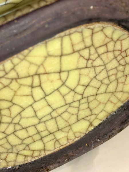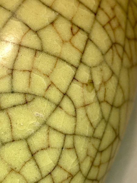 裂紋又分網狀、榆花、冰裂、大小裂,這些紋片肉眼看來好像釉上生裂,用放大鏡看釉質又緊結合,毫無裂痕,