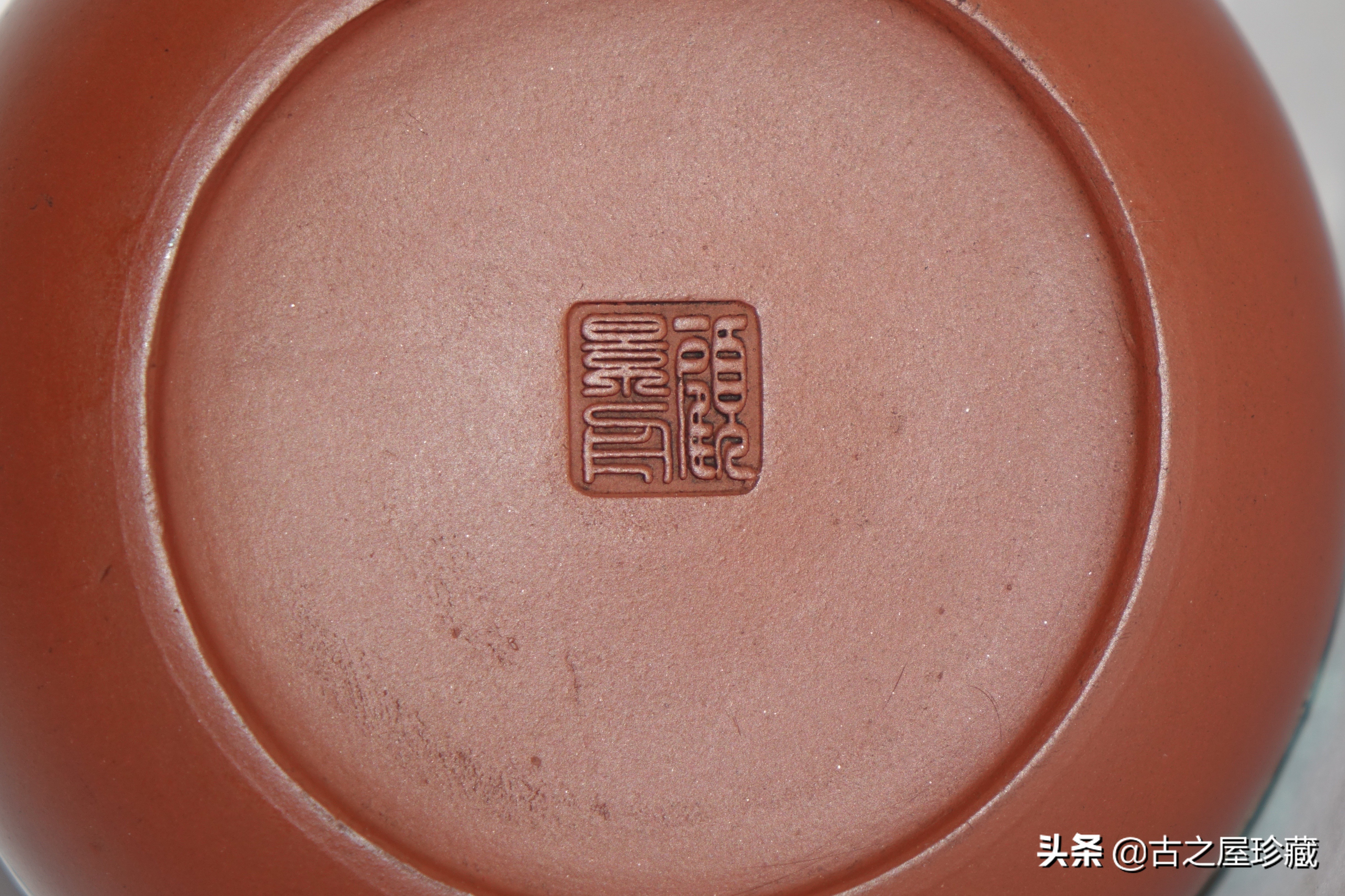 紫砂质地温润细腻,握在手中柔和舒适。壶形扁圆,短流。壶盖有圆形纽,盖口配合严密,底刻“顾景舟制”款识,顾老一生专属印章多达三十余枚,求新求变,工整秀美。壶盖、壶身、壶嘴、壶把点线到位,整体给人端庄大方古朴典雅之感,是希见之珍品,极为难得,弥足珍贵。由此证明紫砂壶的珍贵,这用来形容顾景舟的作品更适合。顾景舟大师在制紫砂壶上已到达了一种高超的境界,他的制壶不仅仅只是一种工艺,而是一种创造,独出机杼的匠心使他制作的紫砂壶已成了熠熠闪光的艺术品。