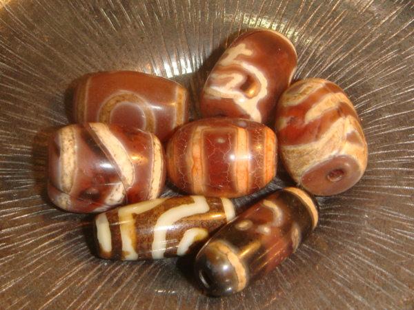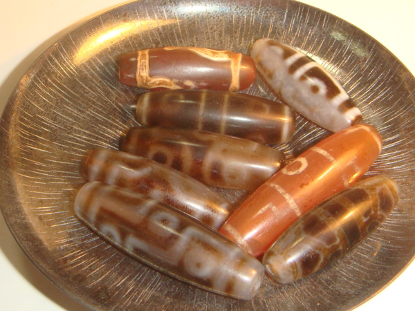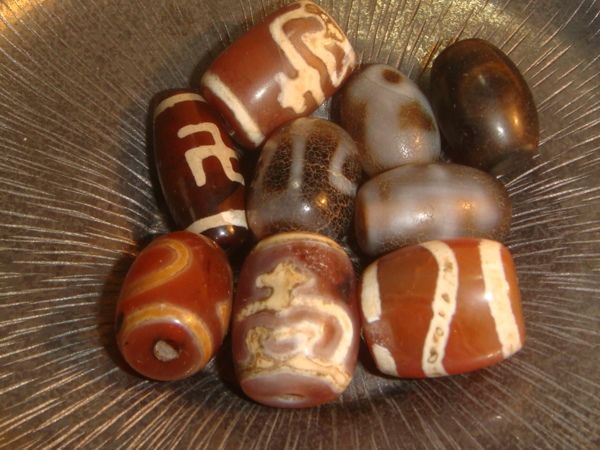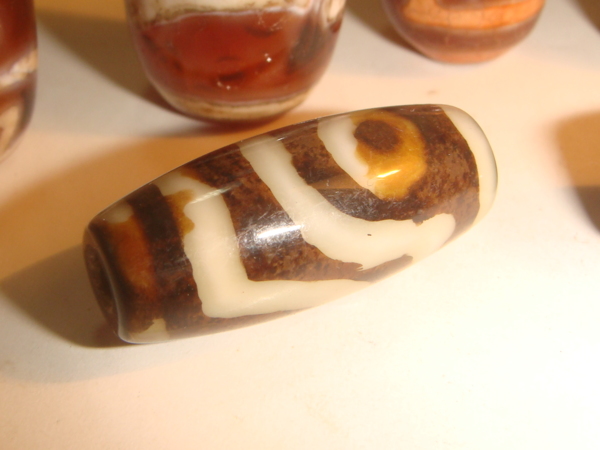 西藏先民認為,天珠是神創造的超自然之物,是自然生成的或天降下來,如果有誰說天珠是“天人合一”的工藝品,會遭到他們強烈的反對。問許多藏族群眾天珠來自哪裡,他們講述著同一個古老的神話:在古代,天珠是神仙佩戴的裝飾物,每當珠子破損或稍有損壞,神仙就把他們拋灑下生物的化石,與鸚鵡螺、三葉蟲處於同一時代。在喜馬拉雅定日一帶、藏北無人區化石山上都有人曾撿到過海螺化石天珠。老百姓的故事則說:曾經有一個人在高山之巔見到這樣一隻蟲子,他用帽子撲它並將它罩住。當他挪開帽子時,蟲已經石化了,成了一粒天珠。 R.內貝斯基—沃科維茨博士在其《西藏的史前珠子》一文中講述西藏西部阿里地區的一個傳說。人們認為,天珠起源於茹多克附近的一座山上,遇上大雨天珠如溪流般地沿餘坡瀉而下。然而,有一天,一個巫婆用“邪惡的目光”盯著那座山,於是天珠馬上停止流淌。在天珠不斷流出的地方還可以看到頗具特色、眼睛紋路的天然天珠。
