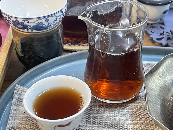 初揭壺蓋,那股霸道又醇厚的陳韻轟然炸開,不是小家子氣的清香,是歷經時光淬煉的蒼勁風骨,裹挾著勐海茶區的山野氣韻,直沖鼻腔!公道杯傾出茶湯,琥珀色的茶湯瑩潤透亮,似流動的黃金液,掛杯香悠長綿密,似有千言萬語要在舌尖婁道來。