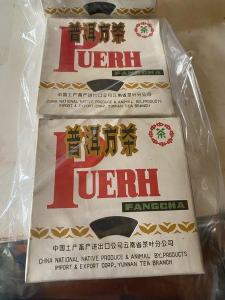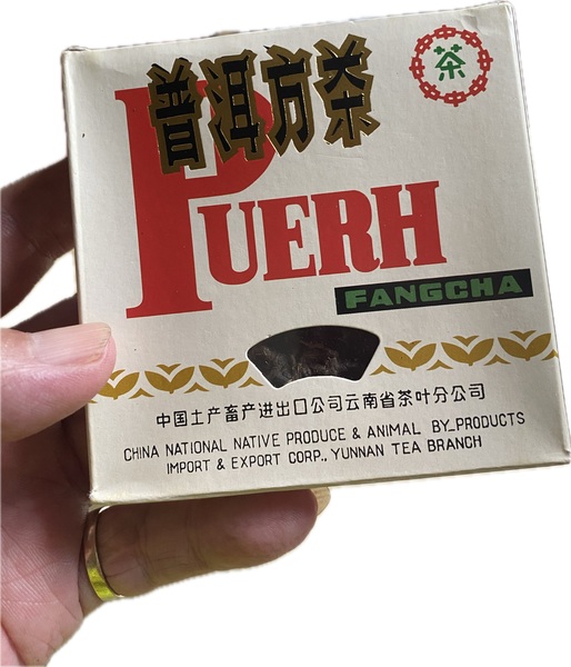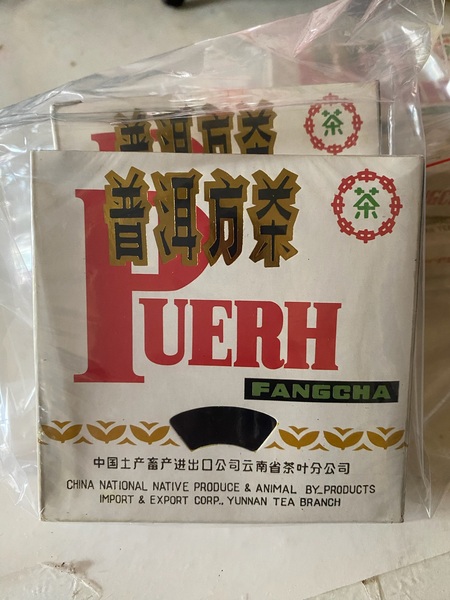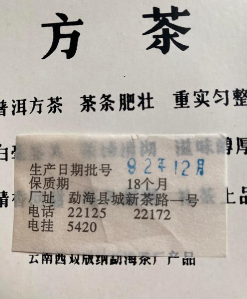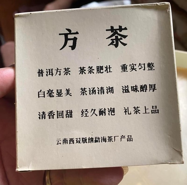 回溯三十餘年前,92方磚的誕生本就是一場顛覆常規的創舉。為滿足日本市場對高等級茶品的嚴苛要求,勐海茶廠打破當時磚茶多用粗老原料的慣例,精選南糯山一級春茶為主料,搭配少量二級茶菁精心拼配,芽頭肥壯、白毫顯露,在那個以粗枝大葉為磚茶主流的年代,堪稱用料奢華的「行者」。灰底白板紙盒上「普洱方茶」的中英字樣、無金邊的扇形開窗,以及那個流傳至今的「100公分」包裝錯印,都成為它獨有的時代印記,更暗藏著出口轉內銷的曲折過往——曾以2.47元/片的低價在倉庫能量積壓,卻因生活在倉庫中積壓而稀缺。