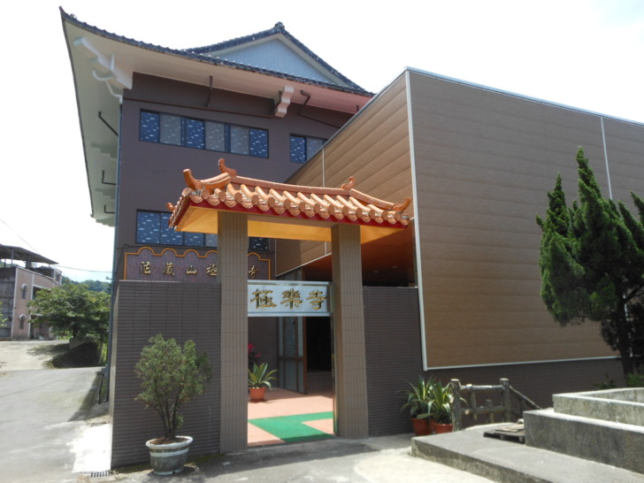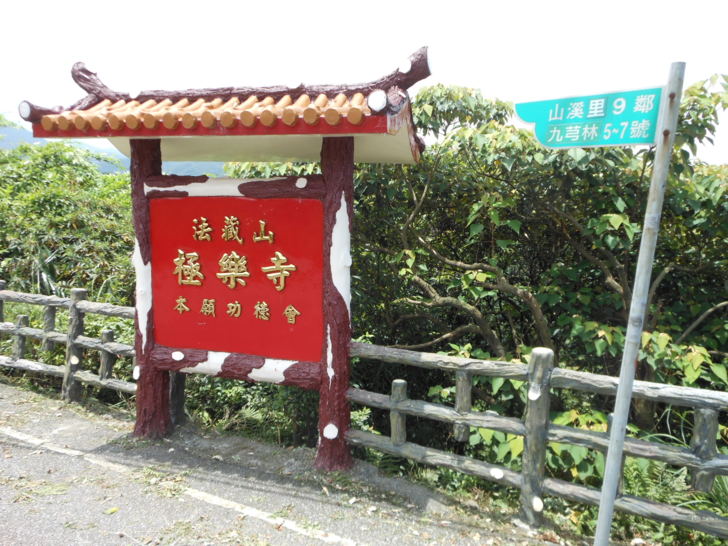 在山路上開約5~10分鐘後,在右側會看到一個路標「法藏山極樂寺 本願功德會」,並有一岔路向下,走此岔路下去沒多久就到了極樂寺。