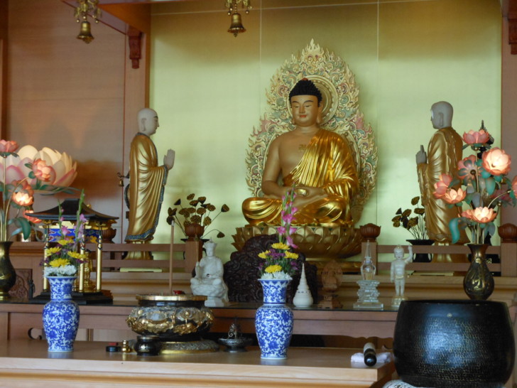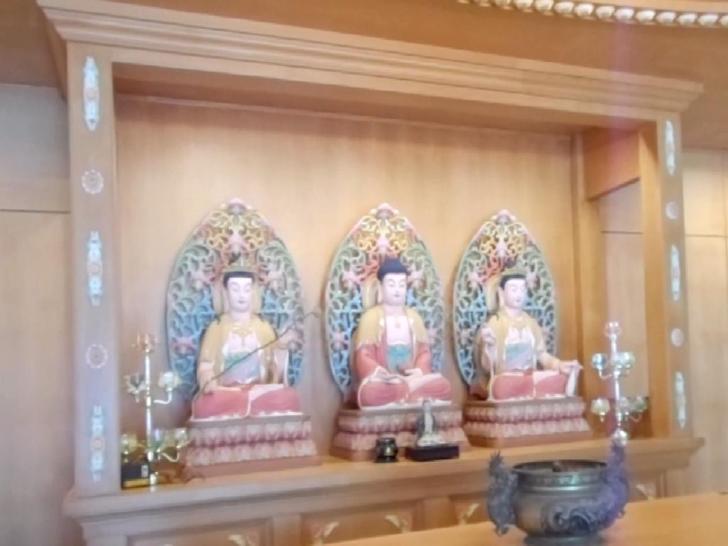 大殿中間供奉的是釋迦摩尼佛、