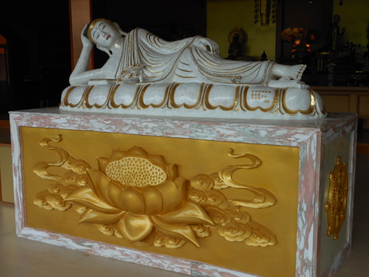 大殿中間有一尊臥佛,神態優雅,怡然自得。