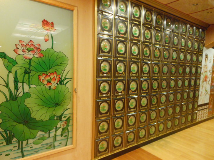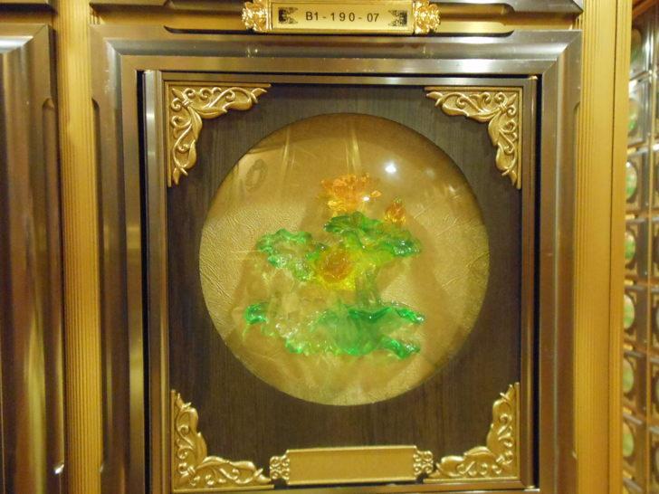 蓮花區塔位的面板鑲刻了綻放的蓮花: