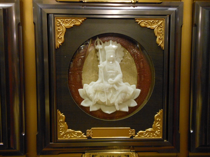 地藏王區塔位的面板鑲刻了盤坐的地藏王菩薩: