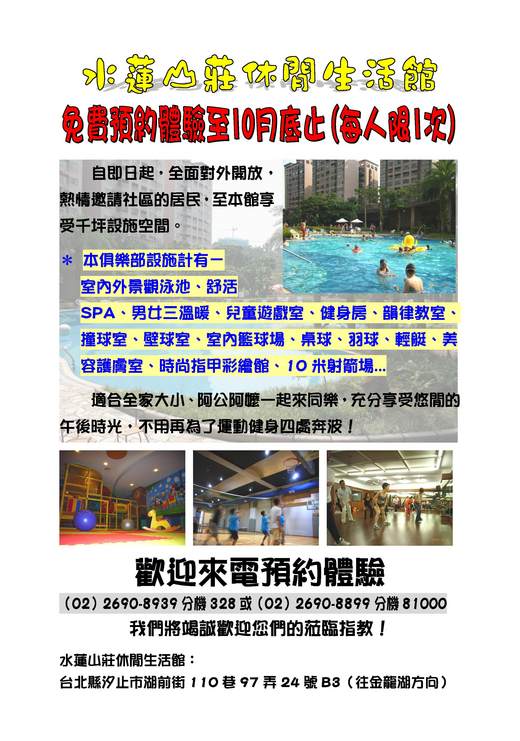 三、射箭體驗:週六11:00-12:00及15:00-16:00,體驗價:100元/20枝(含教練指導)地點:戶外泳池畔-