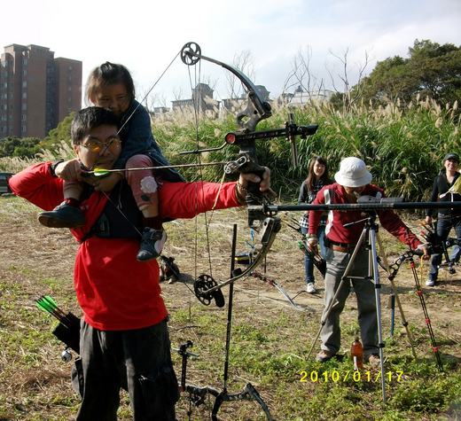 今天唯一一張的照片補充~中場休息餘興節目的〝負重射箭〞(我背的是謝華恩小妹妹啦!!),這除了是體能考驗外,還增加了持弓及瞄準的難度,射完一支箭就滿身汗,我是累爆了,但旁邊的隊員們,則是看到笑翻了ㄏㄏ~