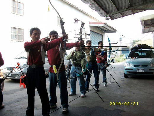 今天2010/2/21(年初八)三峽的聚會(特別謝謝~大師兄及阿丹,精心為大家提供並佈置室內18米的舒適射箭場地),創隊元老們幾乎又是全員到齊賀歲。同時,很高興也有三位新的成員來一起加入我們~石文德(石大哥)、周正中(小中)及鄭玉茹(玉茹),謹代表隊上熱烈歡迎三位的加入,也期待有更多的同好一起與我們同樂,透過射藝的切磋,讓生活與事業都能更上一層樓!