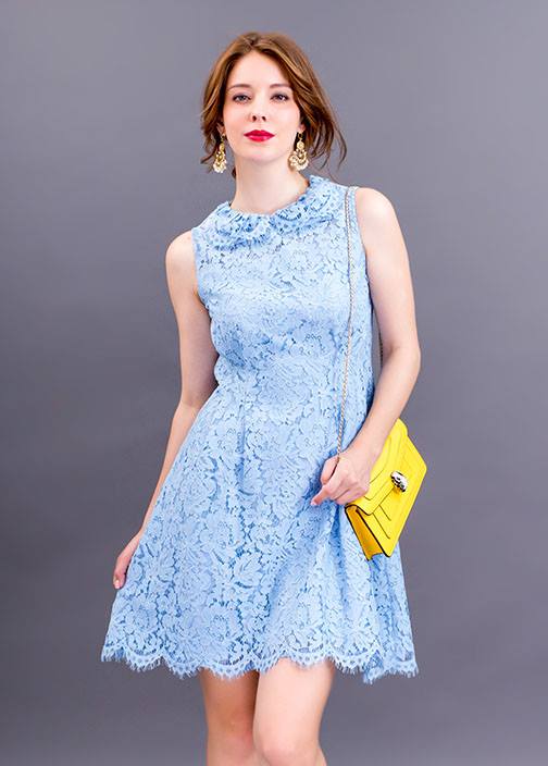 款 式: 無袖小領蕾絲洋裝 玫瑰法國睫毛蕾絲