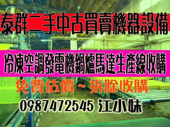 小婷0987472545泰群二手中古機械機器買賣拆除回收收購機器整廠機器變壓器冰水機組現金工廠結束庫存免費廠房鐵皮屋工廠樣品屋整廠機器廢鐵拆變壓器馬達機器機械倉儲