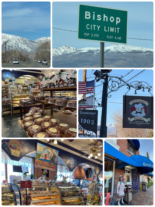 Bishop四面雪山環繞,空氣透亮明媚,市內不少行人已換上夏日T恤,享受午后溫暖的冬陽。百年老店Erick Schat’s 麵包店旅客頻繁進出,是Bishop的鎮城地標,沒帶著他們的麵包離開,不能說來過Bishop。