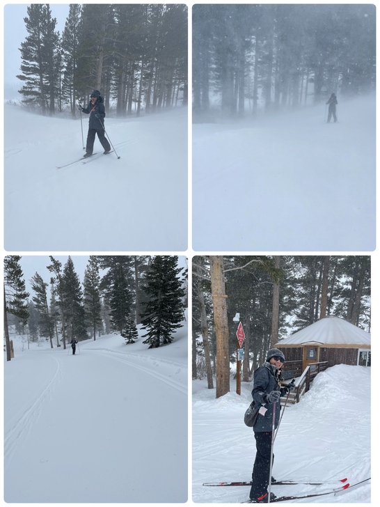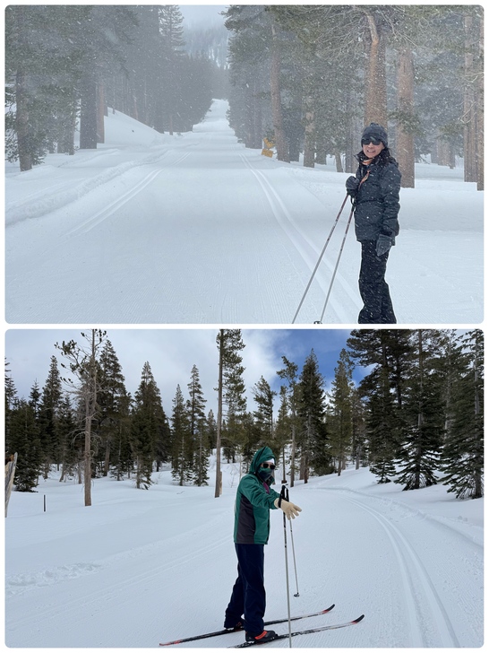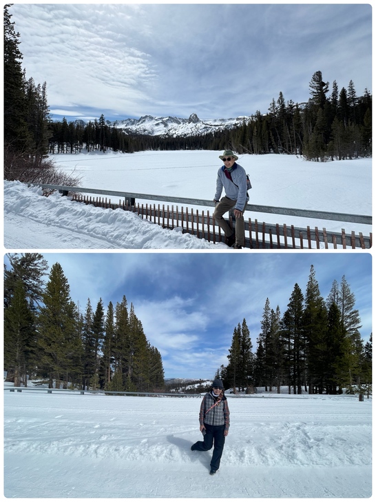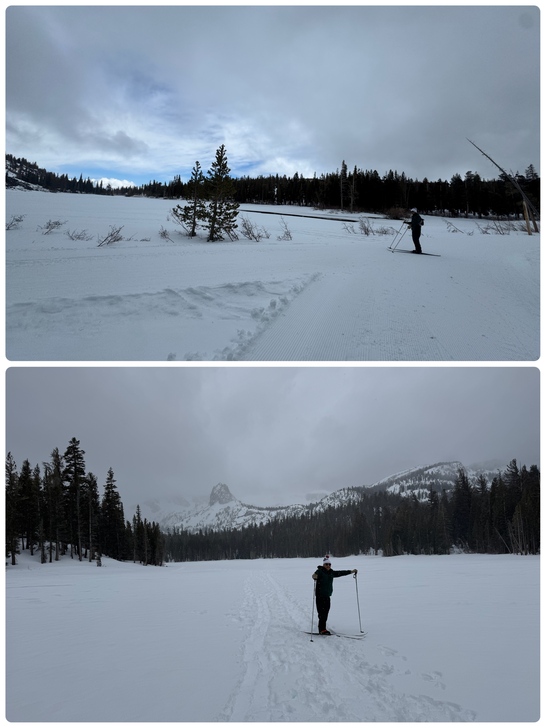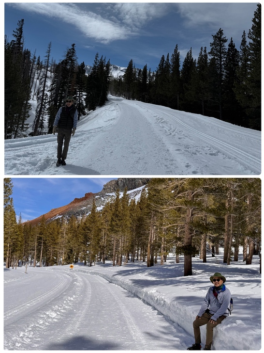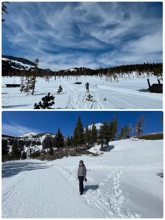 從8600英呎的Twin Lakes出發,經過Lake Mary、Lake Mamie,上行至8950英呎的Horseshoe Lake,總長2.5 英哩,沿途4個湖泊全被冰雪覆蓋,綿延白雪伸向清澈藍天,壯麗又純淨。一路只偶見三兩人羣,遊客大多前往有纜車設施的坡道滑雪塲滑雪,這裡是安靜的角落,讓慢行者不受干擾,享受雪原大地的空寂寧靜。