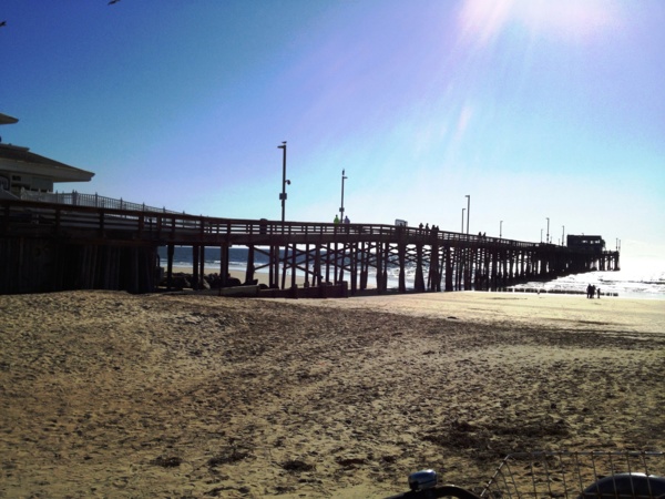 直行過街進了海灘自行車道就是此行的起點。 終點是Newport Beach 碼頭。單向路長大約6英哩。 下午一點多,天氣超晴,起了風,感覺還是有點冷。南下順風騎起來很輕鬆,風呼呼的在耳邊鼓脹,城市的聲音都被擋在外面。 週末剛過,車道空蕩蕩的。大概因為不用與人、車、狗爭道,今天的海鳥看起來特別神氣。