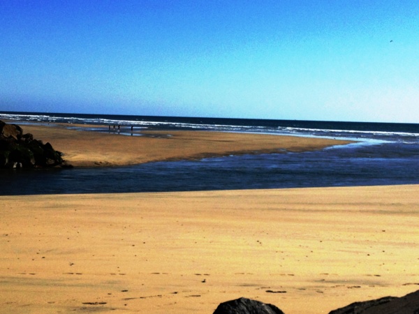 Huntington Beach 自行車道的終點是Santa Ana River 的出水口,由於地處邊陲,平時遊人較少,水道切出的那一小片沙洲,就成了遺世獨立的一塊靜土。 從這裡過橋,就進入另一個城市Newport Beach。
