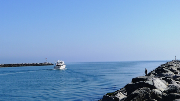 騎到Boardwalk 的終點路就不通了,循E街左行出去,接到Balboa Blvd右轉,看到叉狀路時右轉G街,再從Ocean Blvd 左轉便直行進入Jetty View Park。這裡便是Balboa Peninsula 的尾端。 Balboa Peninsula緊連Newport Beach,是Newport Beach 市的一部份,南沿太平洋,北則有Newport Harbor渠道切入,地理上形成一條細長的半島狀,因而得名。環水的特色也使這裡的風景特別吸引人。