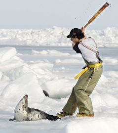 一整群幼齡海豹在浮冰上集體被屠殺,獵人用棍棒猛烈敲擊小海豹頭,活剝海豹皮,整片海豹血染紅雪地,更傳來小海豹臨死前無助的哭聲……。保育團體今天公布加拿大海豹遭非人道屠殺的影片,並指台灣八年來輸入加國海豹油43萬1364公斤,等於間接屠殺12萬隻海豹,因此呼籲國人拒絕使用海豹、海狗製品。