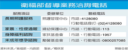 衛生福利部明天正式成立,過去由內政部負責的家庭暴力、性侵害通報及身心障礙者福利申請等業務,也將轉到衛福部,但地方政府受理民眾申請服務或補助窗口並未改變。
