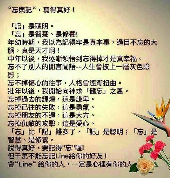 記是聰明,忘是智慧 讀後.....