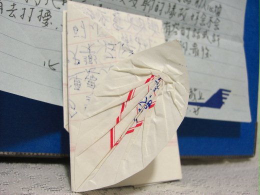 以前離鄉背景在外工作,心靈空虛,最喜歡寫信和收信(尤其收哥哥的來信)哥哥的來信拆信時,總會有驚喜。因為哥哥會很講究的將信紙摺的很有創意,很藝術。甚至有時不捨得拆信,生怕拆開後會摺不回去。