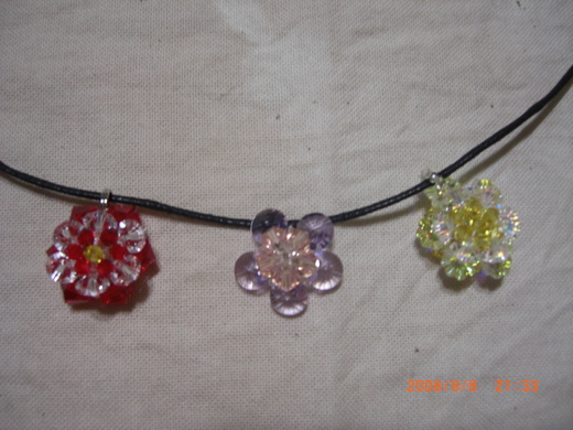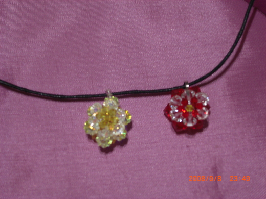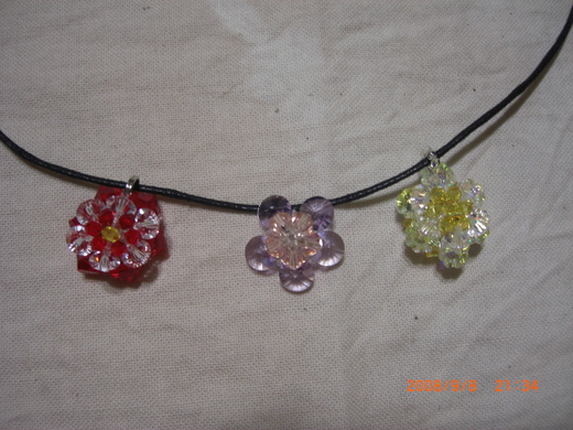 紅色項飾( 材料)水晶珠: 6顆5m紅角珠,6顆4m白飛碟珠,6顆3m紅角珠,1顆3m黃角珠