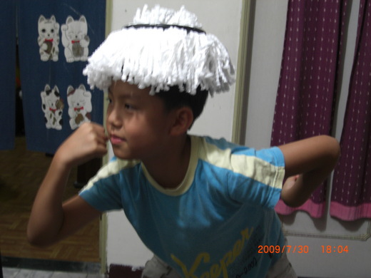 兒子(南)看到我從電視購物買的新拖把,自告奮勇要幫我組裝、幫我試用。他說他在安親班看過安親班阿姨使用過;果然看到他很認真的拖起地來。