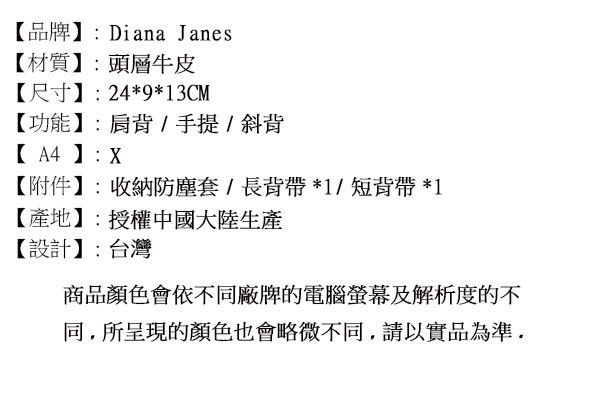 【Diana Janes 黛安娜】頭層牛皮兩用女包評價