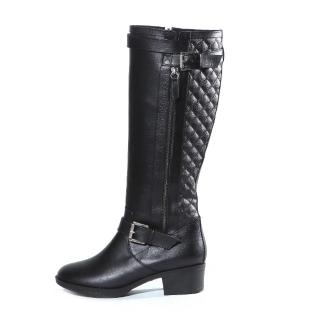 3653294 韓國直送菱格真皮雙釦帶長靴 3653294