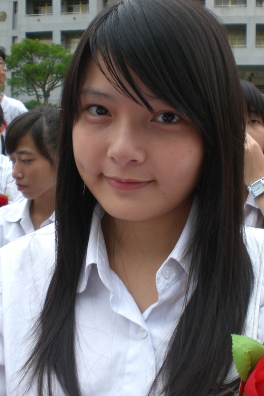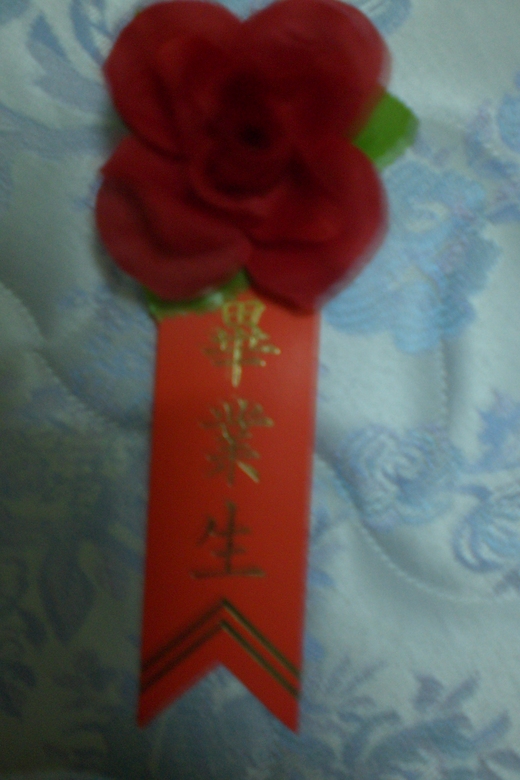 紅色的靠背椅,飄著細雨的陰天天氣,司令台上的樓梯滿滿的都是氣球,還有著兩大看板,寫著珍重再見,旁邊也圍著許多的汽球,這是我們的畢業典哩,終於~輪到自己的畢業典禮了。
