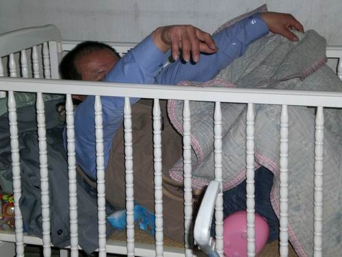 今天是除夕,大圍爐的日子。而家中從一大早就開始忙了,上圖的照片,是因為三叔叔在要圍爐前,與爸爸及小叔叔們喝酒喝太兇,有點茫了,竟然睡在我們家小惡魔的大床床裡。