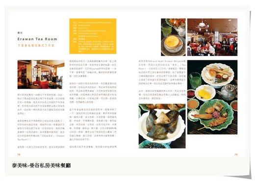 這本書內容很豐富,包涵了泰國菜四大菜系的介紹、基礎食材及醬料的說明及DIY作法、12道好學地道的美食食譜、台北、曼谷、清邁、普吉島及蘇梅島的眾多美味餐廳推薦,還有料理學校及旅遊泰國的工具資訊,更重要的是,連旅遊及享用泰國美食的「中、泰會話」也通通一應俱全,非常完整貼心!