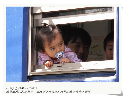 老實說,那天在池上最引我遐思的,倒不是知名的便當本身,而是店外停著的兩節火車廂。特別是透過窗口,看見車廂內的小娃兒不時好奇的探出頭來,一瞧見我,還向我笑笑的揮揮手,頓時便把我帶回小時候的車站月台回憶裡,好不甜蜜啊!