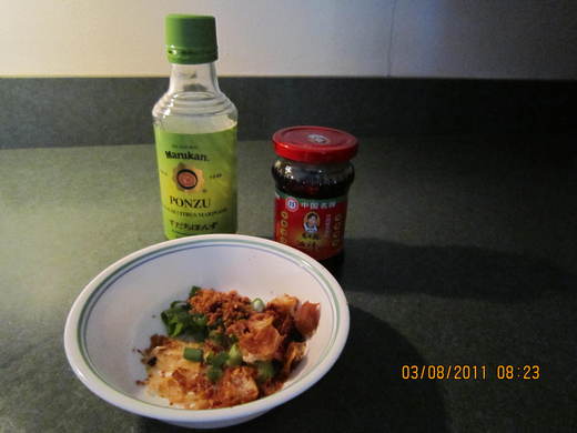 3. 再來有請辣媽 老干媽辣醬 1-2 tea spoon日本柚子醋(或白醋)