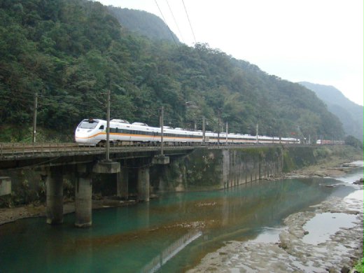 圖(三)1063次太魯閣列車快速通過第三基隆河橋,遠方為1031次
