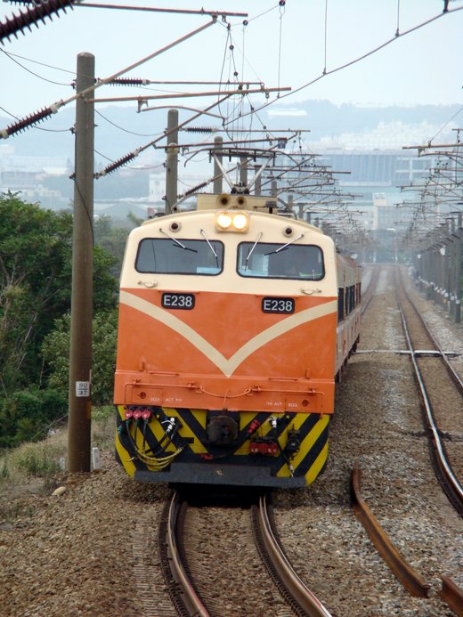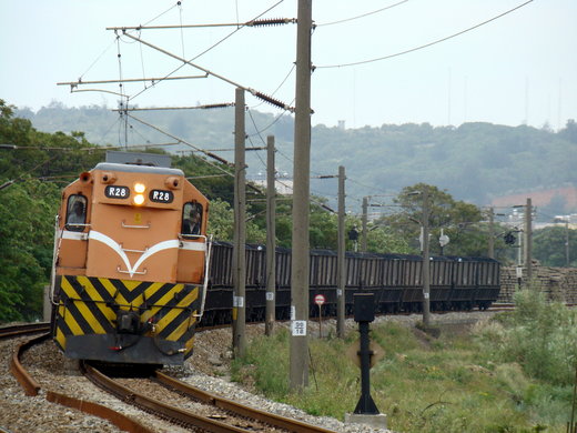 到了午後,看到進站預告號誌機是一邊橫線、一邊斜線,我想該不會是煤列跟人家玩雙單了,過不久看見遠方列車接近是1906次煤列走西正線,後來14次走東正線要八掉1906次但後來1906次就先機外讓14次先進湖口站.等14次開走之後在繼續往林口線前進。雖然1906次在湖口南號誌是給紅燈,因為上坡的關係,司機大哥都沒放過油門就一直催油,但就是開不動,所以這一段路對上行煤列來說真的非常吃力。我等14次通過後就往湖口方向跑,就追過1906次在彎道上拍一次,那種用跑的去追火車的感受還第一次體會到,後來聽著阿魯努力的催油奮力爬坡,聽得還蠻爽的。