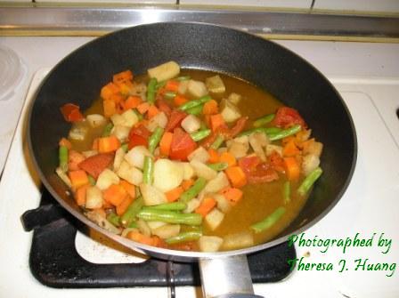 作法如下:先將上述蔬菜切成小塊,四季豆切成小段。在鍋中放點橄欖油,用中火將馬鈴薯和紅白蘿蔔先炒,再放入番茄,最後加入四季豆,加少許的海鹽。待所有蔬菜都熟透和軟了,特別是馬鈴薯、紅白蘿蔔和四季豆,即可起鍋。