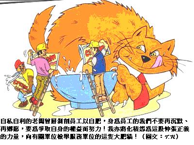 在這個案例中,其實我能爭取到什麼?自己並不是很清楚,起先我只要的是退休俸提撥金要按照規定由雇主另行支付,而非從薪資中扣除。其次,我能爭取回原有的鐘點費嗎?按照大肥貓的說法,等所方收入穩定,大環境好轉後,鐘點費就能調漲回來。但是,依我看大肥貓的習性是吃定員工的,怎麼可能再調漲回來呢!