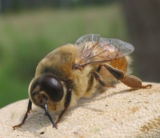 返家後查了ㄧ下蜜蜂的資料,才知道會蜇人的蜜蜂是工蜂(如頂圖);雄蜂(如底圖)和蜂王不會蜇人。然而既使是工蜂,也不ㄧ定會蜇人,因為牠的毒針是自衛用的,所以原則上我們人類不主動侵犯或攻擊牠們,即使牠們停在我們的身上,也不會有危險!