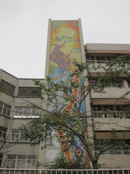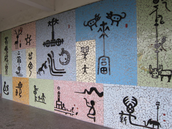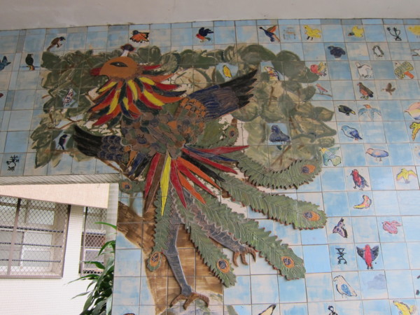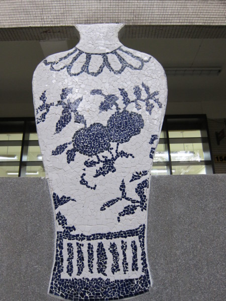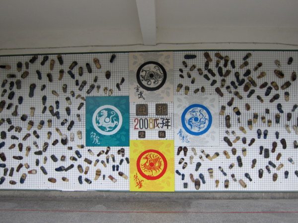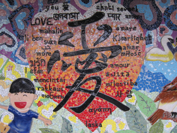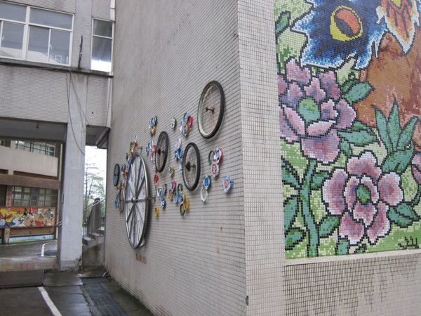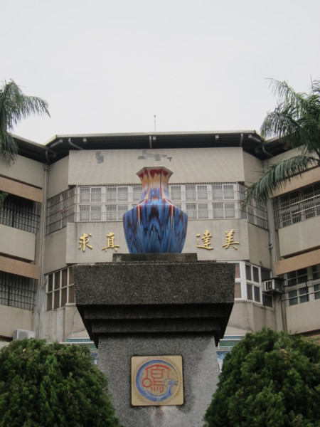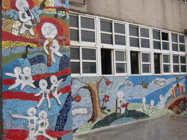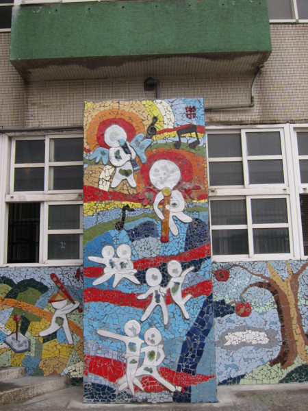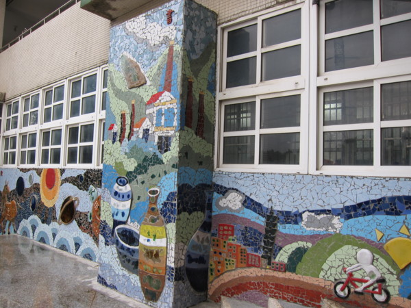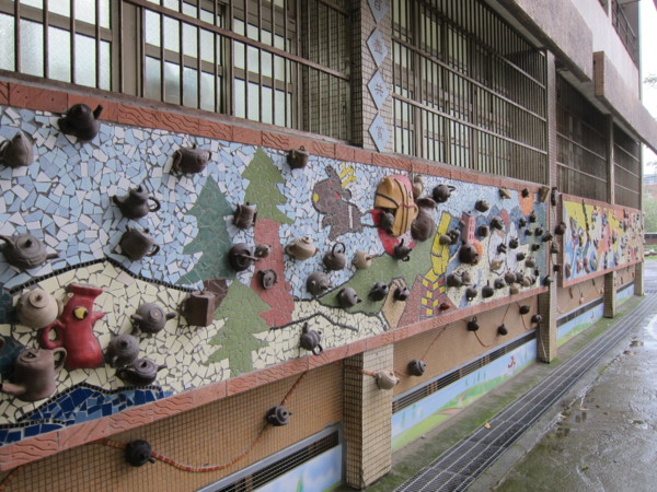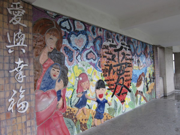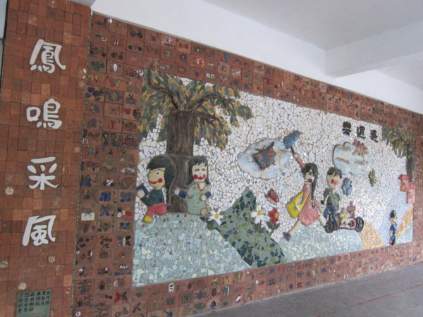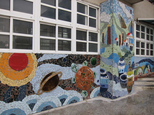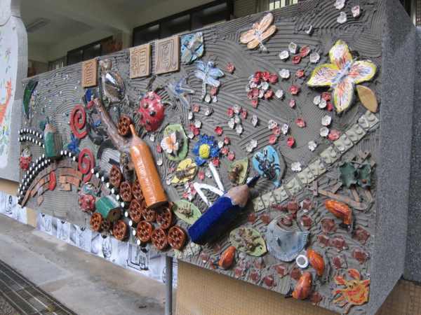 陶藝家潘鎮材說,花瓶以陶瓷鑲嵌雙面仿製而成,學童也參與創作,年代、器皿特色、圖案及造型等皆有考究;學校也安排學生為校慶創作「愛與幸福」陶瓷鑲嵌牆,兩公尺高、斗大「愛」字,搭配廿五國語言「愛」的寫法,融入一百顆以上愛心,希望學生心中有「大愛」。