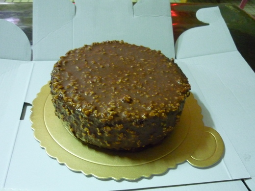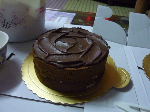 就是簡單的巧克力蛋糕中間夾布蕾餡,上面塗上巧克力醬
