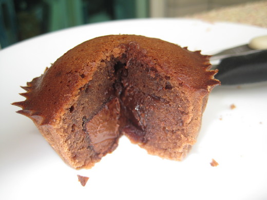 剛從烤箱拿出來,興奮的切開,沒想到巧克力還是固體狀,害我好傷心